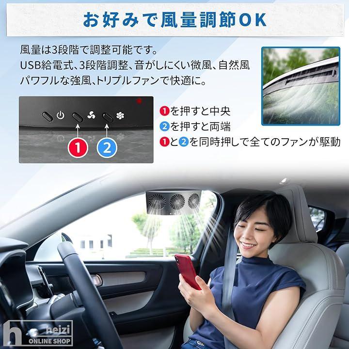 USB給電式、3段階調整、音がしにくい微風、自然風、パワフルな強風、トリプルファンで快適に。