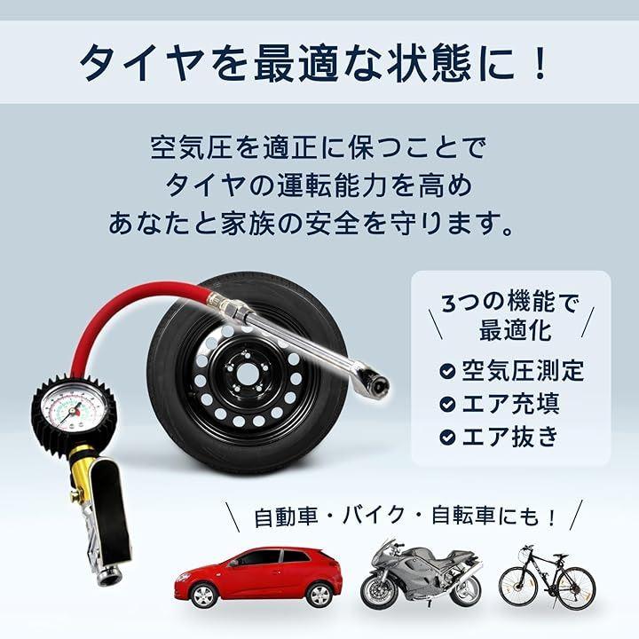 エアゲージ(赤)「高精度タイヤ空気圧計 - 車両全般に対応」車両のタイヤ管理がこれ一台で簡単に。高精度なタイヤ空気圧計で、車のパフォーマンスを最適な状態に保ちます。