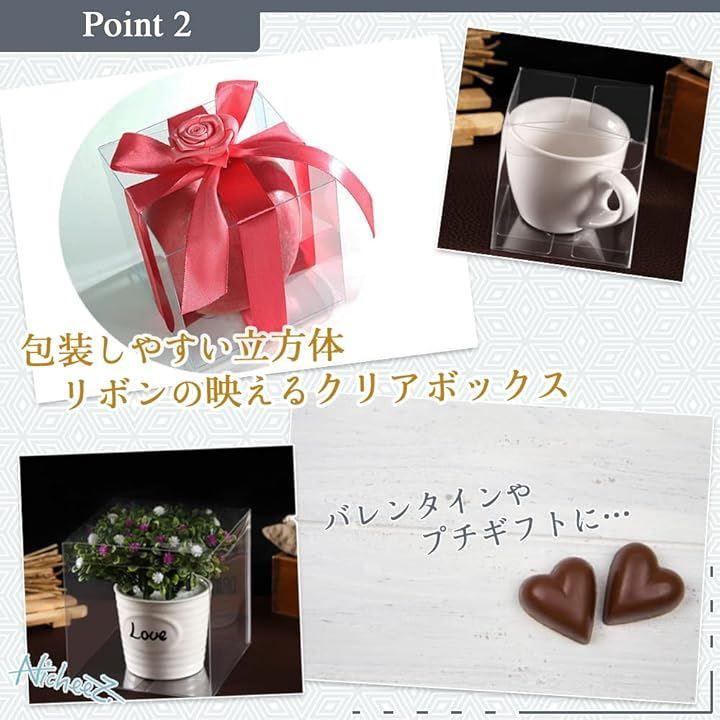 「プチギフト用のプレゼント箱として」小物や贈り物を包装しやすい立方体、リボンや麻紐でラッピングして映える透明ケースです。