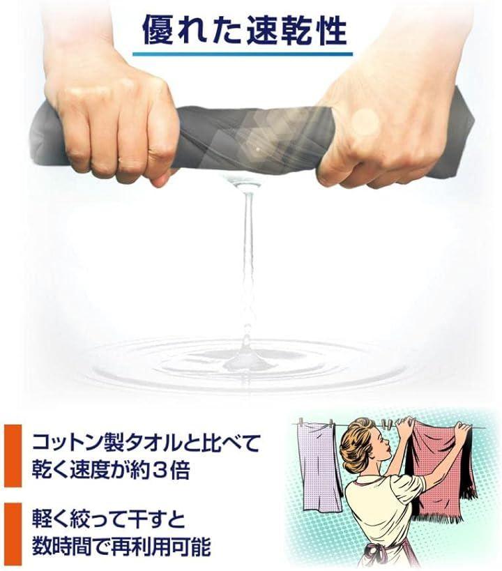 「驚きの吸収力&速乾性で快適に」 両面スエードマイクロファイバー素材を採用し、汗や水分をすばやく吸収。