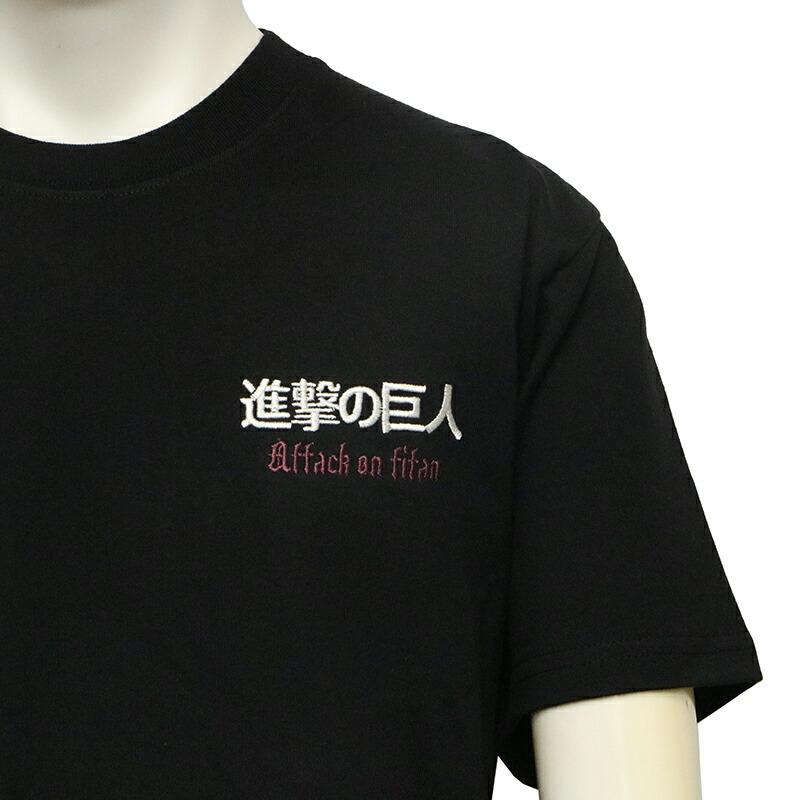 フロントは左胸に進撃の巨人 Attack on Titan ロゴを刺繍で配置。