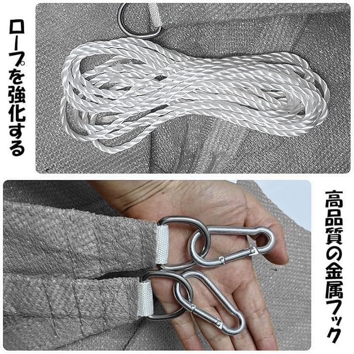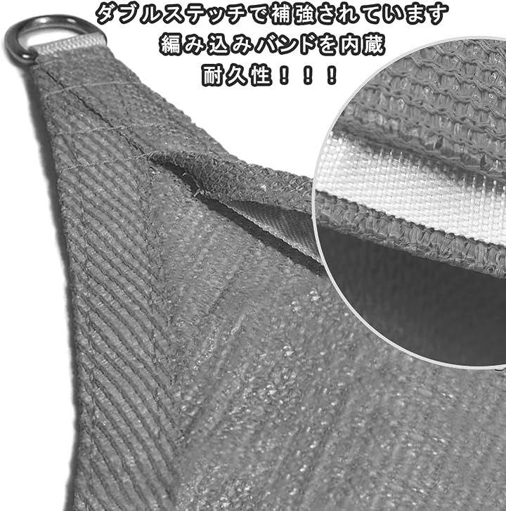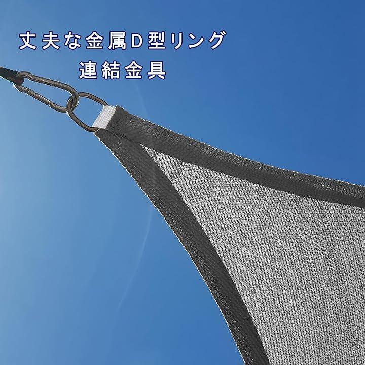 「D型リング連結金具」耐久性に優れ厚手の高密度なポリエチレンを使用した日よけシェードです。