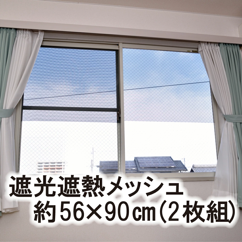 【商品名】遮光・遮熱メッシュ【商品サイズ】約90×90cm約90×180cm約56×90cm(1枚):2枚組【材質】表面:アルミ蒸着・ポリエステルメッシュ、中面:アクリル粘着剤、裏面:OPPセパレーター日本製窓に貼って遮光&遮熱!●アルミ加工している表面は断熱効果があり、夏の日差しをカット!●特殊粘着剤でシワになりにくく、キレイに貼れます●外からは見えにくい目かくし効果、室内からはスッキリ見えます