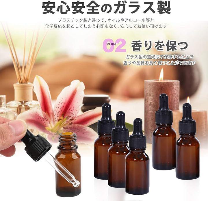 「スポイト付き遮光瓶」フタの部分がスポイト(ドロッパー)タイプになっている遮光瓶12本セットです。