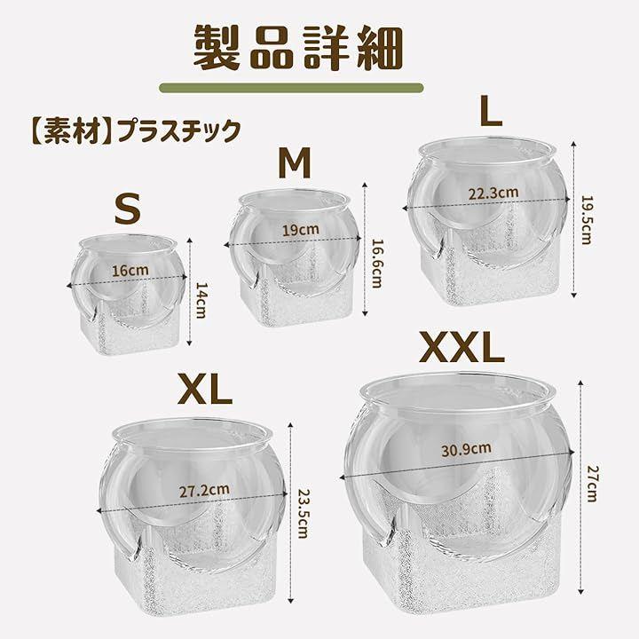 「サイズ」S:高さ14cm幅16cm、M:高さ16.6cm幅19cm、L:高さ19.5cm幅22.3cm、XL:高さ23.5cm幅27.2cm、XXL:高さ27cm幅30.9cm「素材」プラスチック