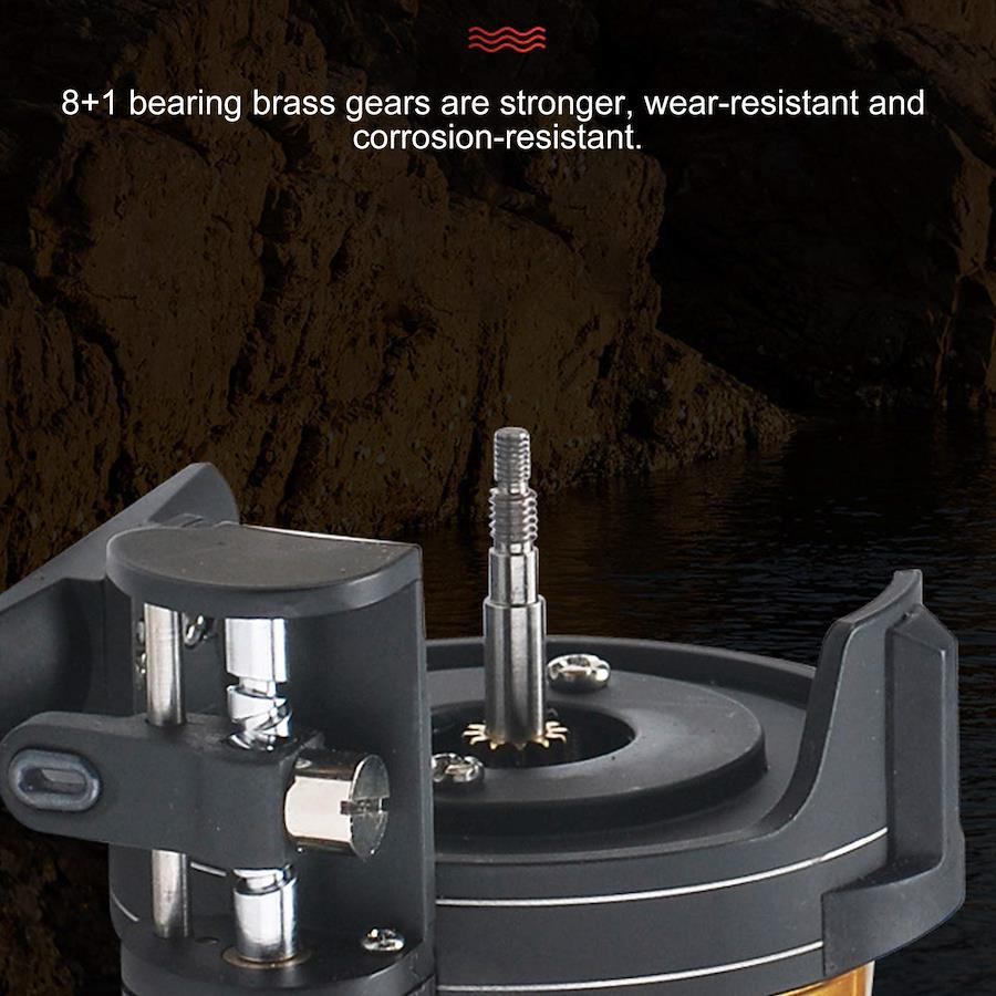 機能:1。自動ラインアウト装置、コンセント穴が均等に前後に移動します。2。磁気の回転ダンパーを微調整して抵抗を調整し、ワンキーリセットし、リセットキーを押して降下を容易にします。3。高強度合金ベアリング、8 + 1ベアリング真ちゅう歯車は、より強く、耐摩耗性、耐食性があります。4。 3.6:1の高速比で、ロッカーは1円回転し、カップは3.6倍回転して、より速く釣ります。5。アルミニウム合金ボディ、丈夫で耐久性があり、長寿命。