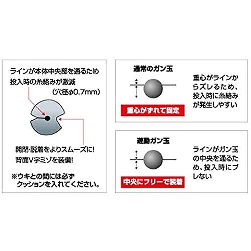 脱着自在!ありそうでなかった遊動タイプのガン玉。ラインにフリーで装着できるガン玉。通常のガン玉は装着するとラインに喰い込む形で固定されますが、遊動ガン玉は中通しウキのように誘導(フリー)状態で装着されます。喰い込み時、ダイレクトにオモリの抵抗が魚に伝わらないため、魚の喰いにも悪影響を及ぼしません。ラインが本体中央を通るため、投入時の糸絡みが激減!最小限の力でより素早い脱着を可能とするため、ライン用の割りの反対側にV字のミゾを装備。冬場の手がかじかむ時期にも重宝します。アイデア次第でウキフカセ以外にも様々なシーンで応用可能。