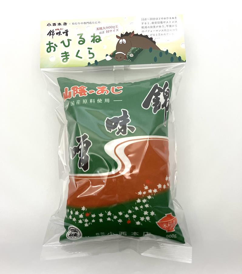 小西本店の代表商品・錦味噌米糀入900gとほぼ同じ大きさの手作りもちもち枕です。地元の寝具店にお願いし、一つ一つ丁寧に手作りしていただきました。まくらの生地は綿100%。まくらの中身には「エラストマーパイプ」を使用しています。弾力性があり、もちもちとした感触の素材。柔らかく、通気性、耐久性、弾力性に優れており、洗濯機で丸洗いも可能です。(※ただし、タンブラー乾燥はお避けください。)デスクでのうつ伏せ寝に、リビングでのお昼寝に、車の中での腰当てにこっそりと大活躍します。15分〜30分ほどのおひるねをすると、疲労回復やストレス軽減の効果があり、午後からのパフォーマンス向上につながると言われています。いい午後への活力充填も錦味噌でどうぞ。