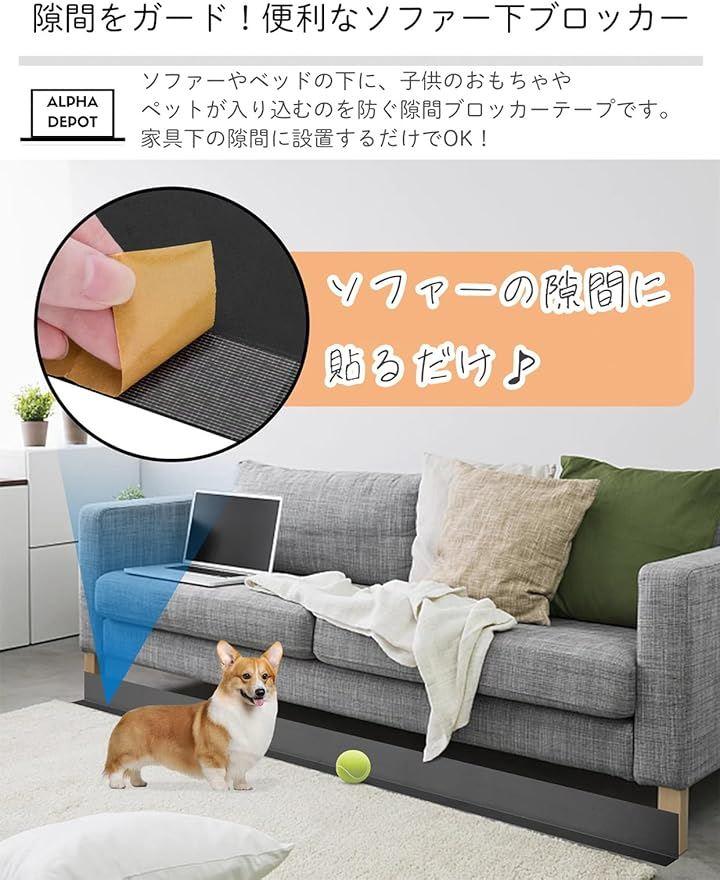「隙間をガード。便利なソファー下ブロッカー」ソファーやベッドの下に、子供のおもちゃやペットが入り込むのを防ぐ隙間ブロッカーテープです。