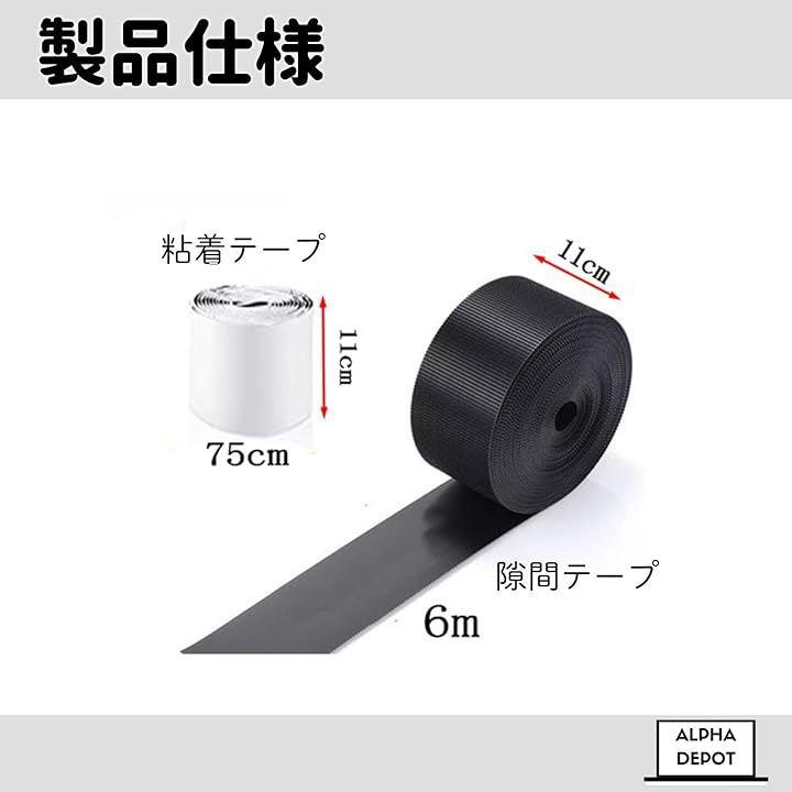 「セット内容」隙間テープ本体x1 / 粘着テープx1「サイズ」隙間テープ:11cmx6m / 5cmx2m 「カラー」ブラック 「素材」PVC