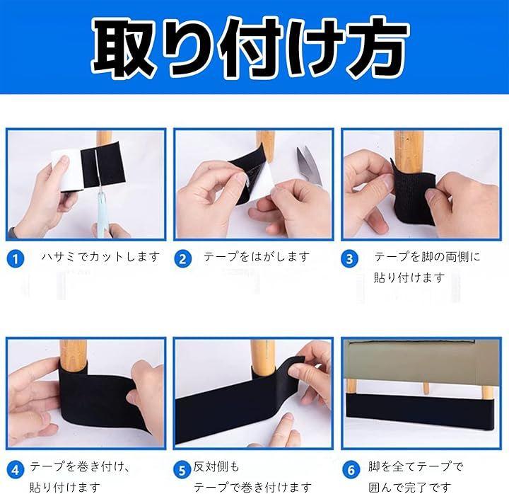 「脱着も簡単。掃除もラクラク」家具の脚部分に粘着テープを貼って、上から隙間ブロックテープを被せるだけ。