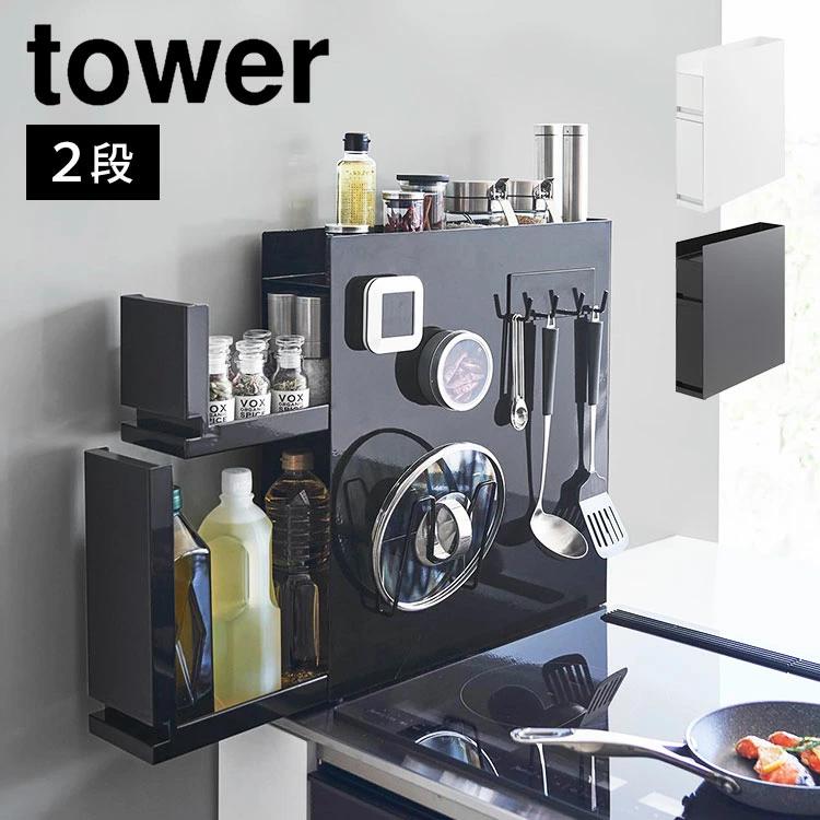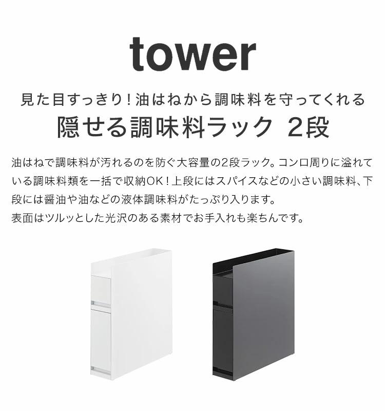 Concealable spice rack, 2 tiers, Yamazaki Tower, spice rack, hide spices, oil, liquid spices, drawer, kitchen storage, spice container, slim, space saving, tower, large capacity, space-saving storage, stove side, spice storage, soy sauce, stove side [ymj-4334]