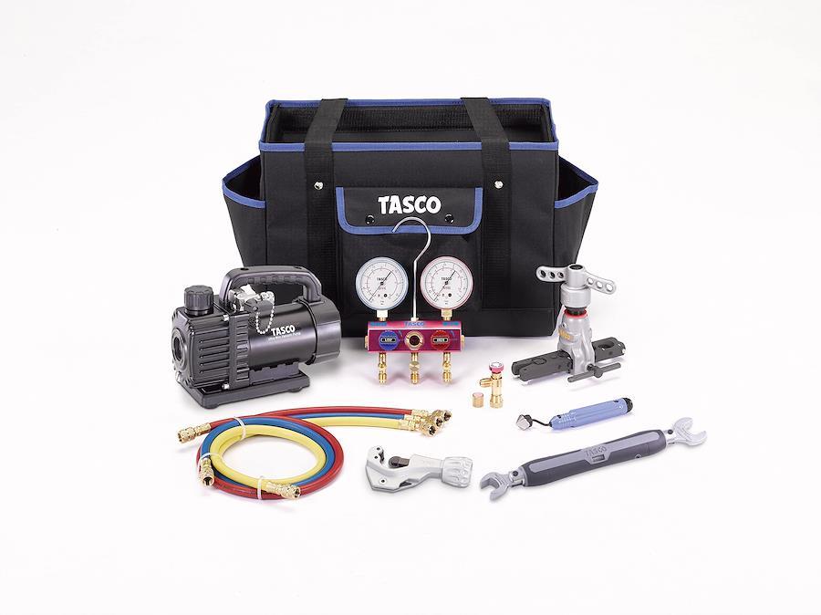 ●《セット内容》●マニホールド(68φ):TA122G●チャージホースセット:TA132AF●真空ポンプ:TA150SV●チャージバルブ:TA166ZA●クランクリーマー:TA520CK●フレアツール:TA550HB●チューブカッター:TA560A●ダブルトルクレンチ:TA771WT-23●タスコバッグ:TA873TS