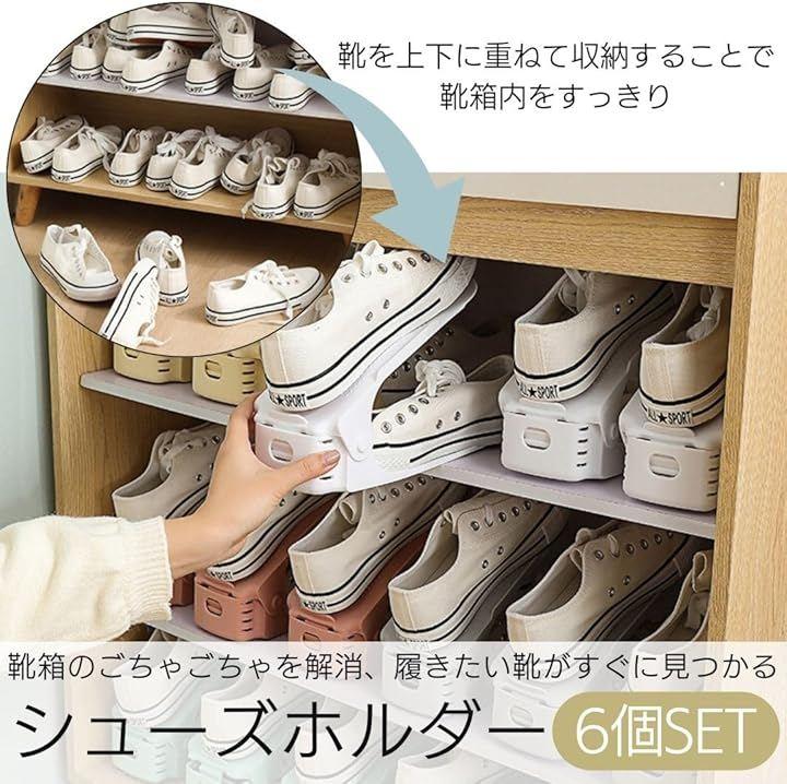 この靴ホルダーで、靴箱の容量を劇的にアップ。6個セットで、靴をスタイリッシュに重ねて収納。
