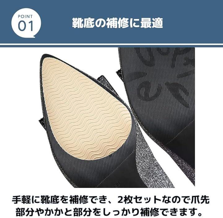 手軽に靴底を補修でき、2枚セットなので爪先部分やかかと部分をしっかり補修できます。