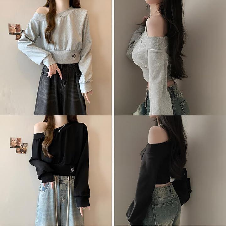 「商品説明」 ショート丈オフショルダーデザインの長袖トップスです。