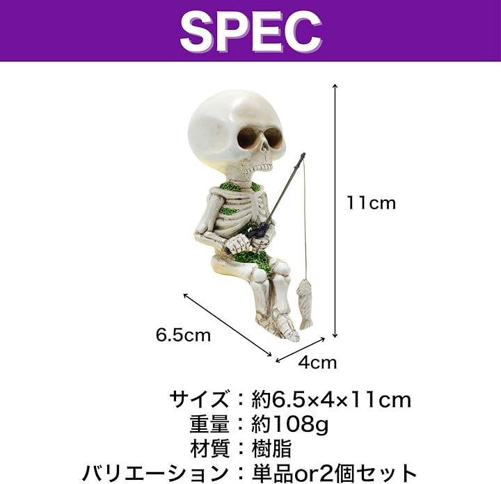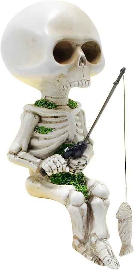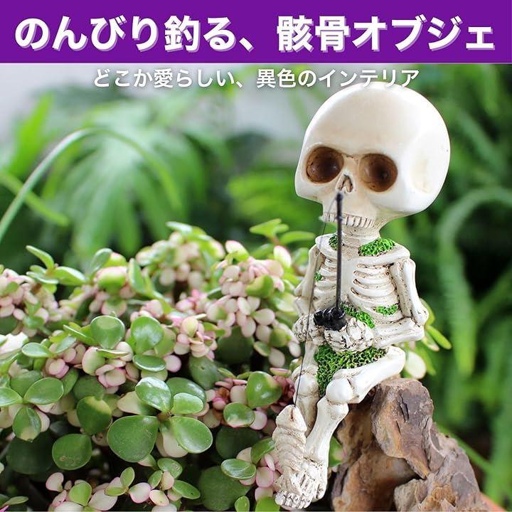 「骸骨 釣り オブジェ」は、のんびりと釣りを楽しむスケルトンをモチーフにした、遊び心あふれるユニークな装飾品です。