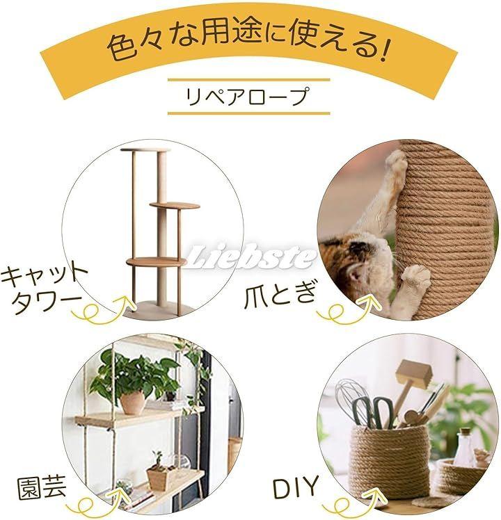 「多用途性」Liebsteの麻ロープは、猫の爪とぎやキャットタワーの補修に最適です。