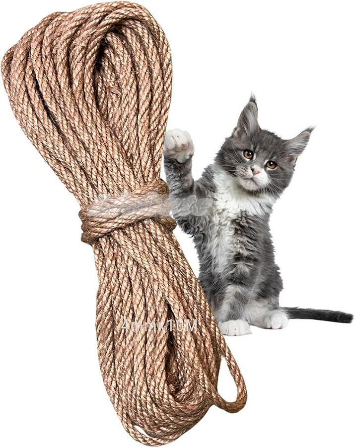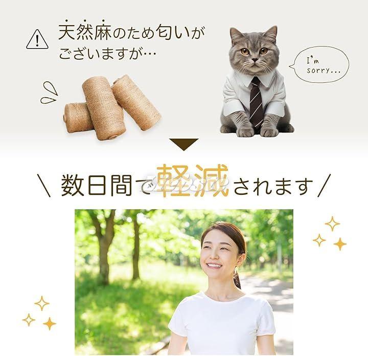 「簡単設置」柔軟性があり、扱いやすい麻ロープは、キャットタワーや爪とぎポールへの取り付けが簡単です。