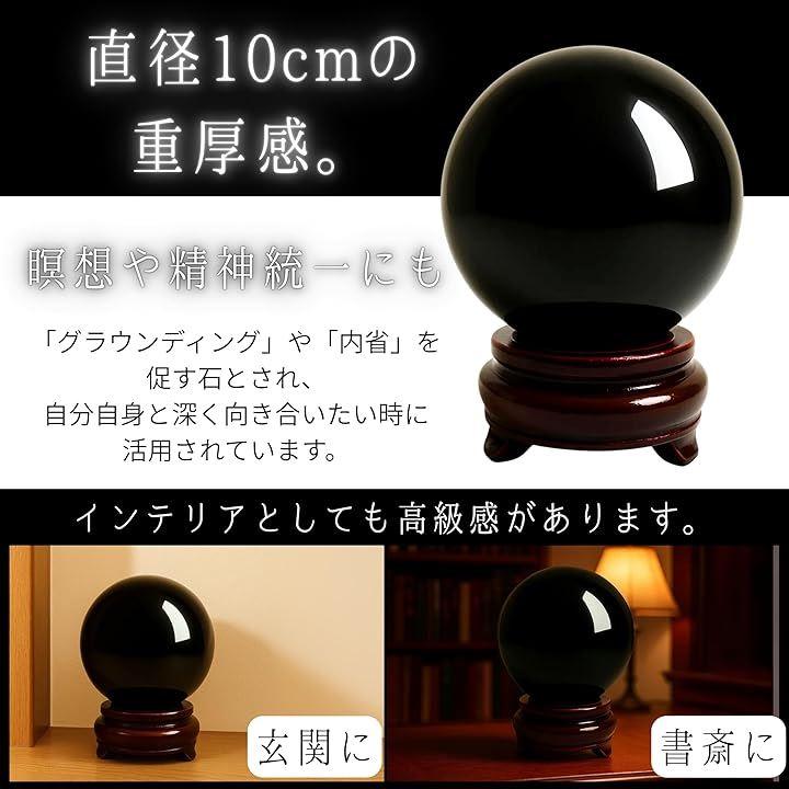 「仕様」 サイズ:直径約10cm 素材:黒曜石(天然石) カラー:ブラック(光沢あり) 付属品:専用台座 用途:インテリア、風水、瞑想、精神統一
