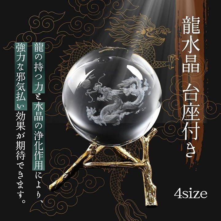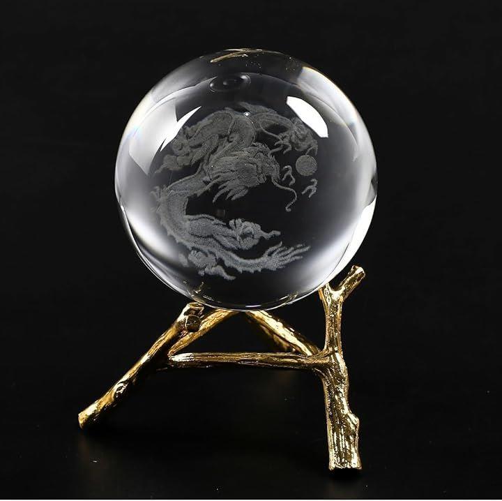 龍があしらわれた神秘的な水晶玉 透明感のあるクリアな球体の中に、繊細な彫刻で表現された龍が浮かび上がるようなデザインが魅力です。