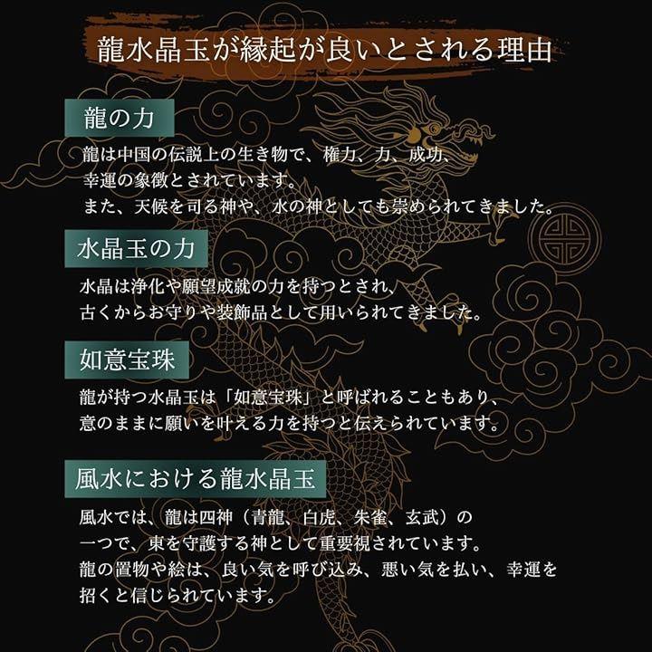 龍水晶玉は縁起の良いモチーフとして親しまれており、見ているだけで心が落ち着き、前向きな気分になれるような存在になってくれるかもしれません。