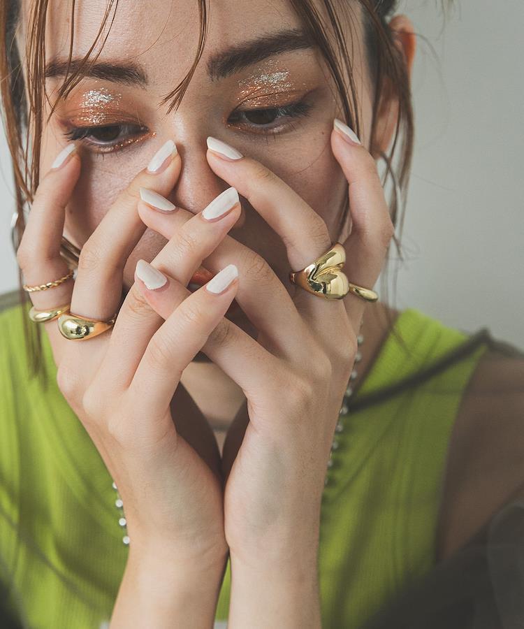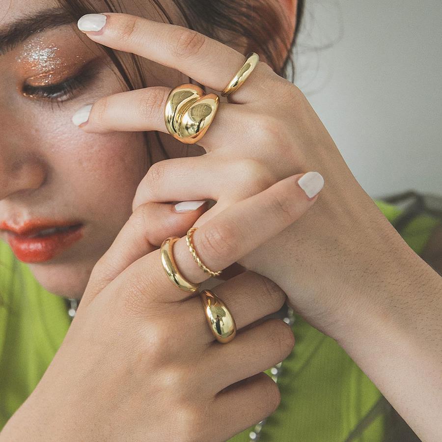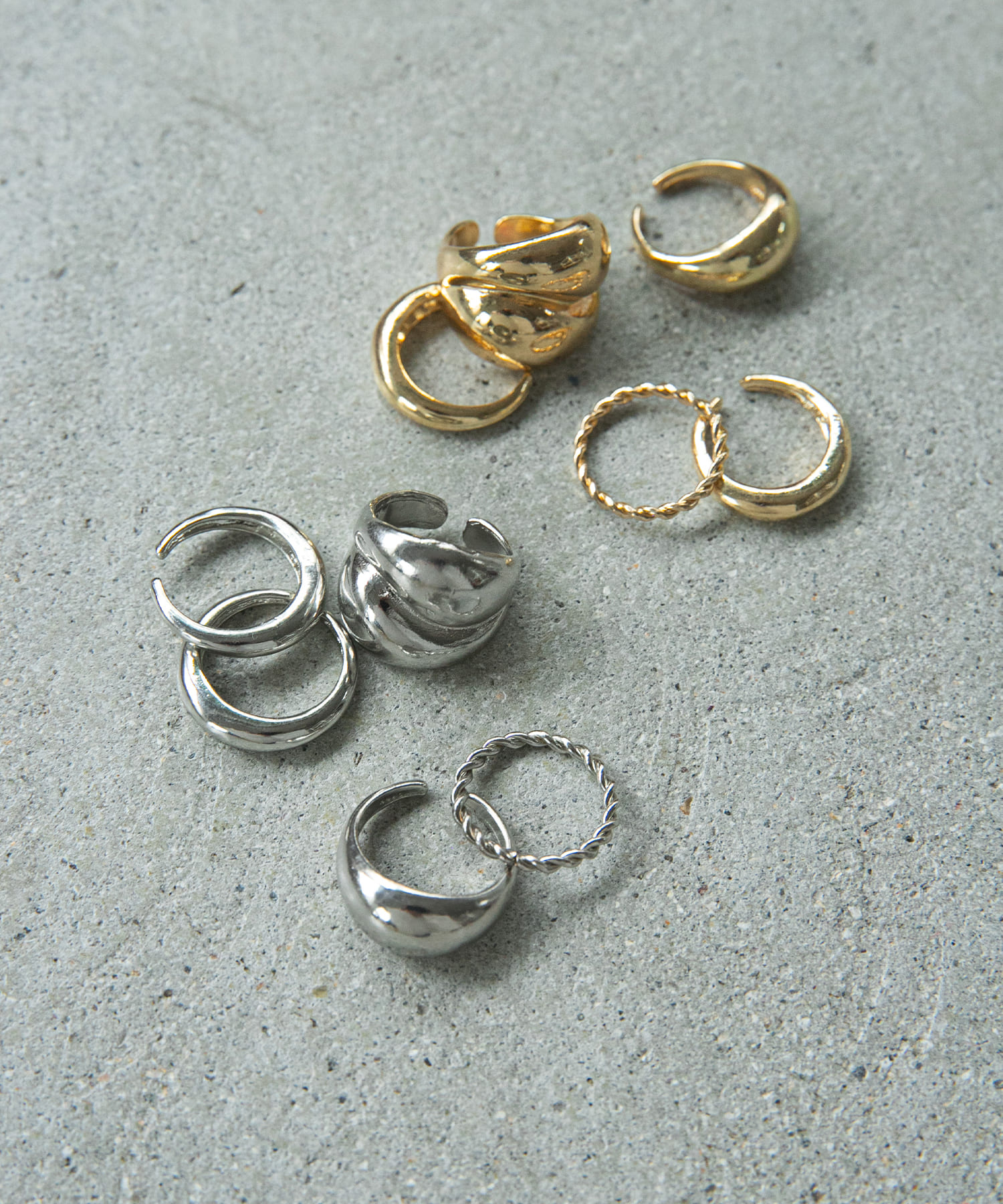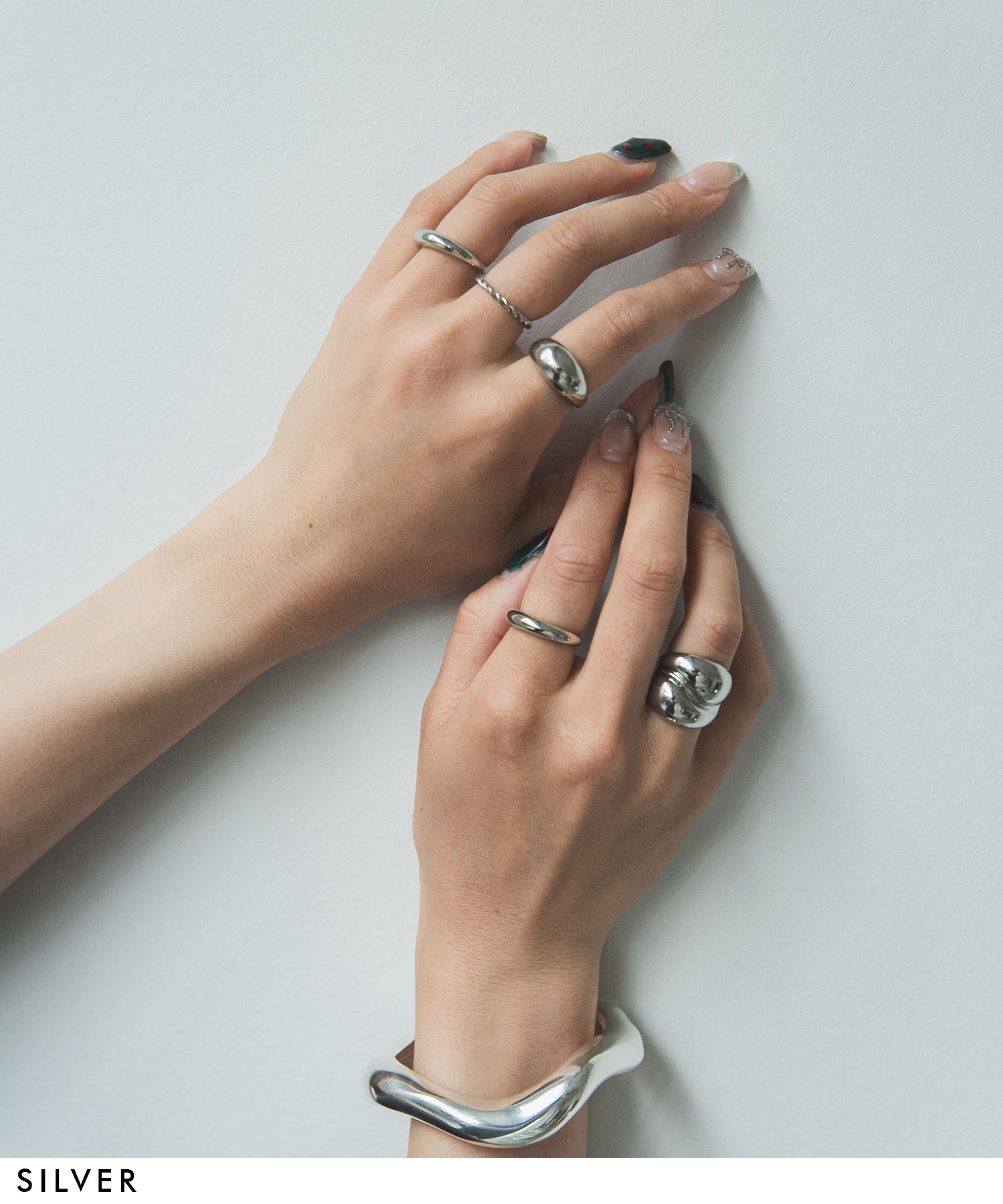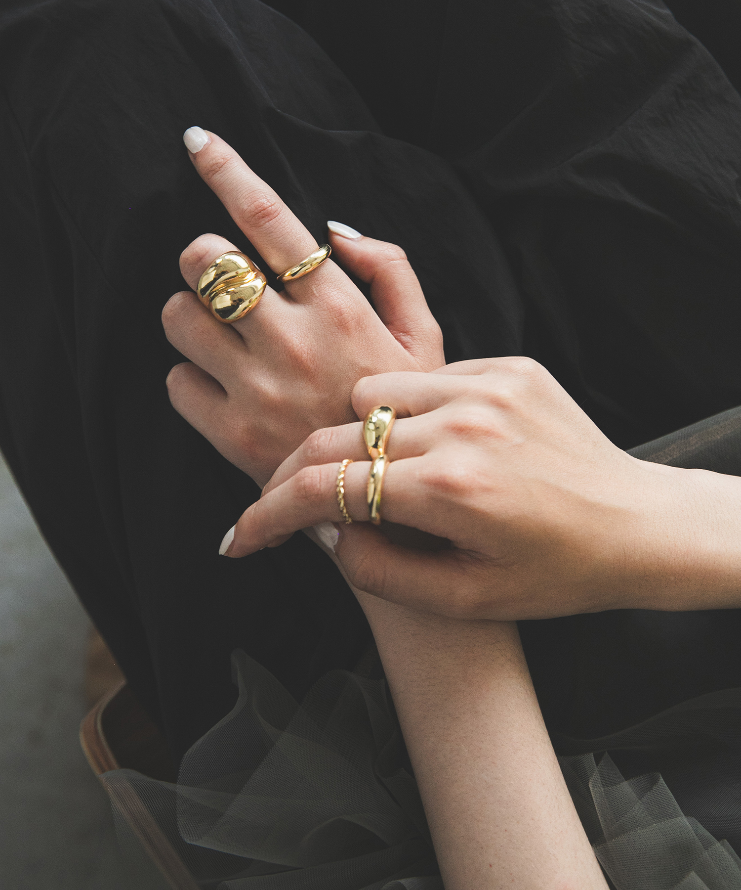 【design】ぷっくりデザインのリングから、シンプルな華奢リングまで幅広い5点をセットにしました。お持ちのリングと合わした単品使いから、5点セットまで幅広く使えます。このセットで華やかな手元に〇