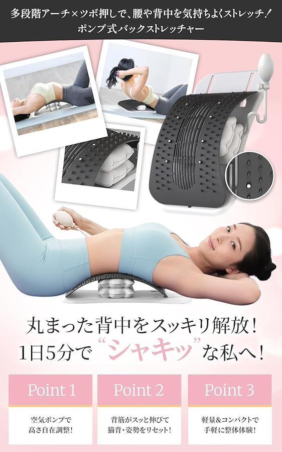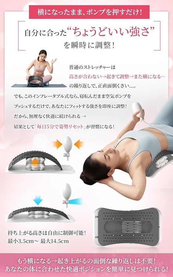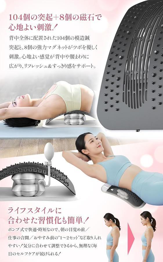 「背骨を整え正しい姿勢へ」 均等なけん引で背骨や腰を優しくストレッチ。