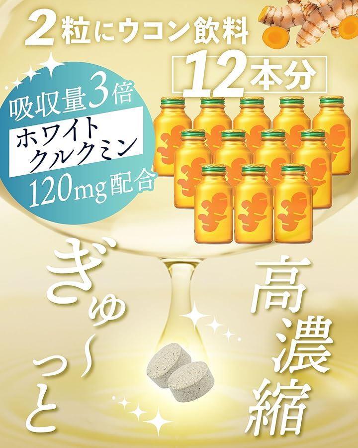 「高濃縮。」2粒でウコン飲料12本分xの高濃縮。