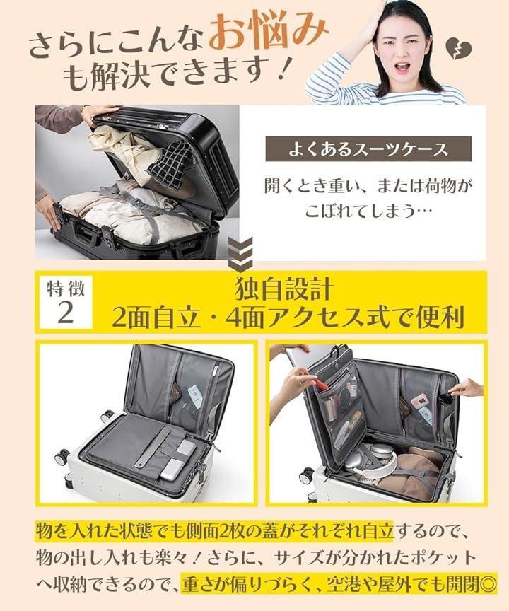 「今までにない特別仕様」スーツケースの外蓋と中蓋をそれぞれ90度にに立たせることができ、2面直立、4面アクセスを実現。