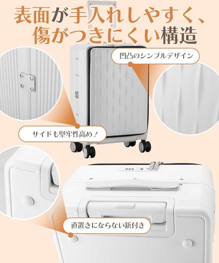 「プライバシー保護」空港などでちょっとした荷物の出し入れの際、180度開くタイプは周りから丸見えですが、このスーツケースは2面を90度立たせることで、人の目線を気にせずに出し入れができます。
