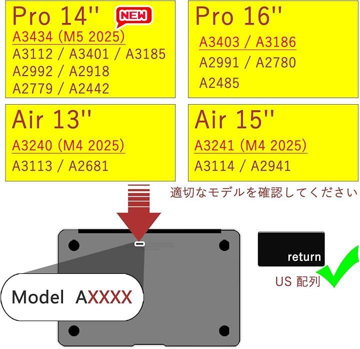 「対応機種」MacBook Pro 14/ Pro 16 (2025~2021発売 M5 M4 M3 M2 M1 Pro Maxチップ)、MacBook Air 13.6/ Air 15 (2025~2022発売新型 M4 M3 M2 Pro Maxチップ) 専用 キーボードカバー 英語US配列。