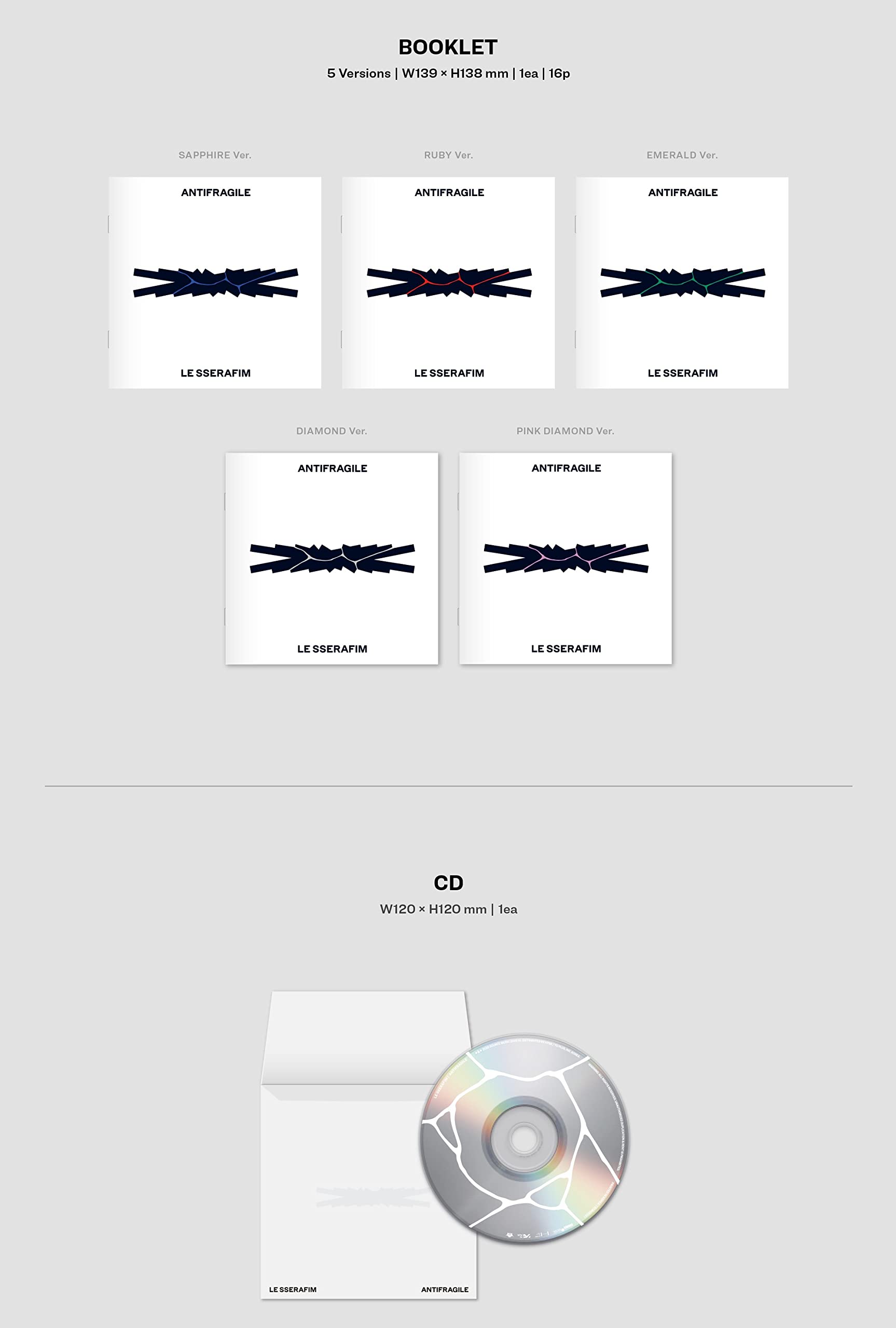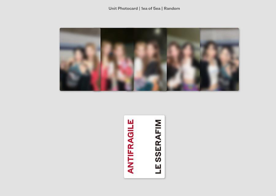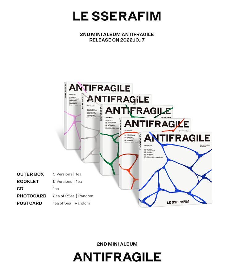 LE SSERAFIM 2nd Mini Album 'ANTIFRAGILE' COMPACT Ver.※本商品には5種類のバージョンがございます。ランダムで1種を発送させて頂きますので予めご了承下さい。※本商品は「COMPACT Ver.」になります。他のバージョンとはコードと品番が違いますので 確認をお願いします。