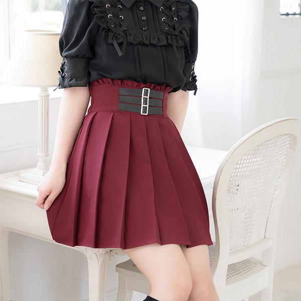【デザイン】3連バックルデザインとハイウエストデザインがポイントのプリーツスカート3連バックルベルトは合皮生地を使用し黒配色で目立つデザインになっています。さらにハイウエストになっているので、ウエストを細く見せてくれ、スタイルもよく見せてくれるので、ブラウスやトップスを合わせたときに可愛くシルエットも綺麗に見せてくれる万能スカートです♪脇にはポケットがついています。後ろウエストはゴムがございますので、多少の伸び縮みが可能になります。今季から新色のブルーとボルドーが登場致しました♪【素材】しっかりとした素材感で裏地もございますので透けの心配はございません。ベルト部分は合皮生地を使用しております。【コーディネート】地雷系コーデにも量産型コーデにもぴったりの幅広いコーデにお使いいただけます新しいカラーも登場しているので、いつものブラウスにカラーのスカートを合わせても可愛く新鮮に見えるのでオススメです♪双子コーデにもオススメなので、カラー別で並んでお写真を撮ったり、イベントに参加してみてください♪《生産国》中国