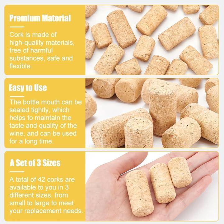 サイズ:各コルクのサイズと数は、44x22mmが12個、39x21mmが14個、円柱形の28x20.5mmが16個です。