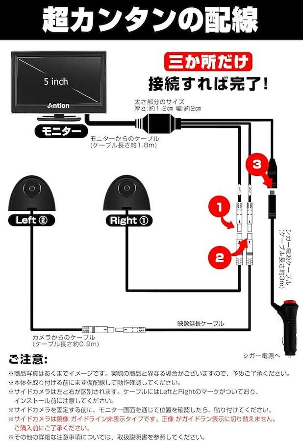 カメラの電源もモニターより取得するので、初心者の方でも簡単に取り付けられます。