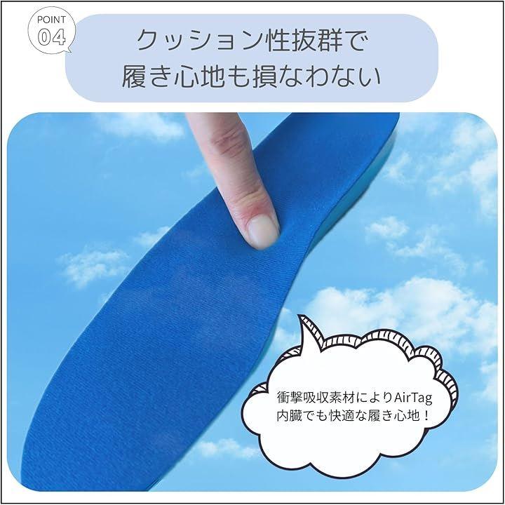 厚さわずか4mmの超薄型設計で、AirTag対応の収納部分も足に違和感を与えにくく、長時間の使用でも快適です。