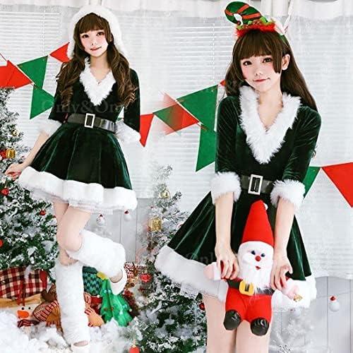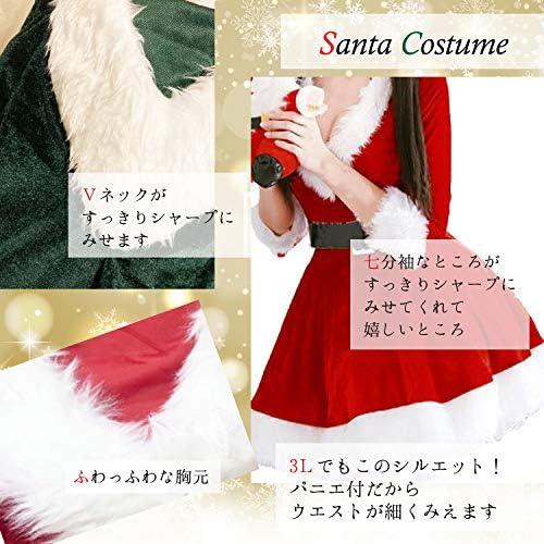 ■商品名[amaletPlay] Vネック サンタ コスプレ パニエ付 ふわふわ ファー クリスマス 大きい サイズ XXL 3L XXXL 4L 大人 レディース 女装 パーティ イベント (グリーン%カンマ% XXL(3L))