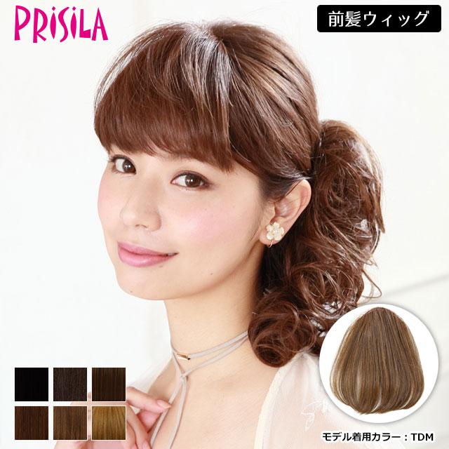 プリシラ総手植え前髪ウィッグ(ポイントウィッグ) 分けた前髪の上にパチンと留めるだけの簡単装着部分ウィッグ