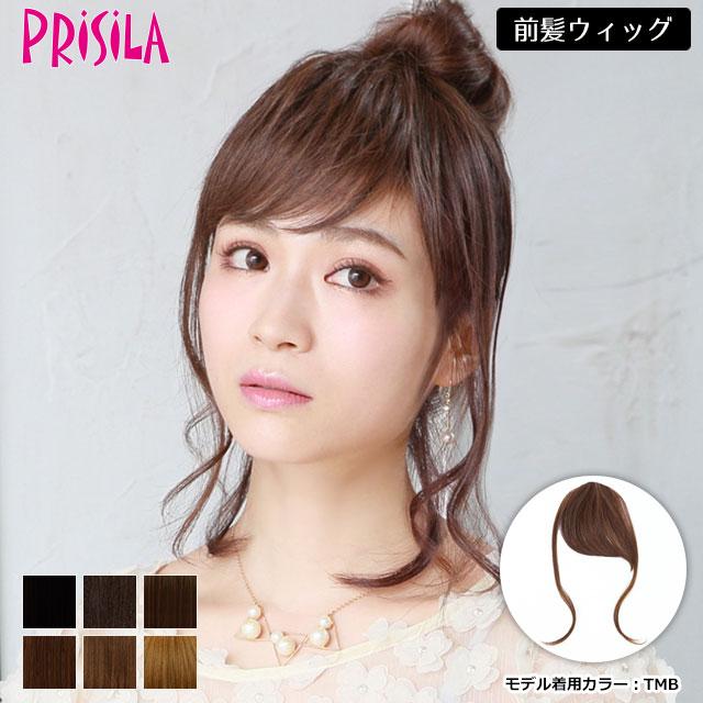 プリシラ総手植え前髪ウィッグ(ポイントウィッグ) 分けた前髪の上にパチンと留めるだけの簡単装着部分ウィッグ