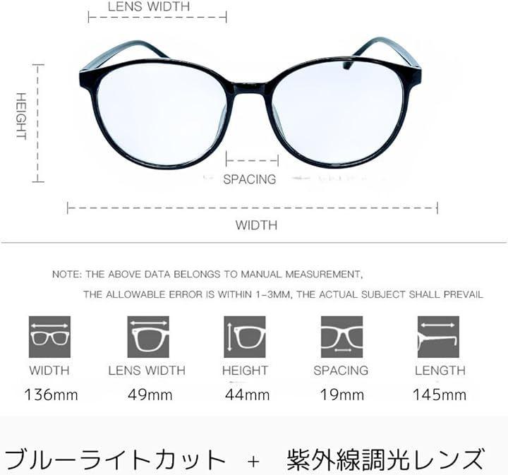 「ブルーライトカットメガネの仕様」フレーム幅136mm、レンズ縦44mm、横49mm、ブリッジ19mm、テンプル145mm、重量18gの軽量設計により、長時間の使用でも耳や鼻に負担がかかりません。