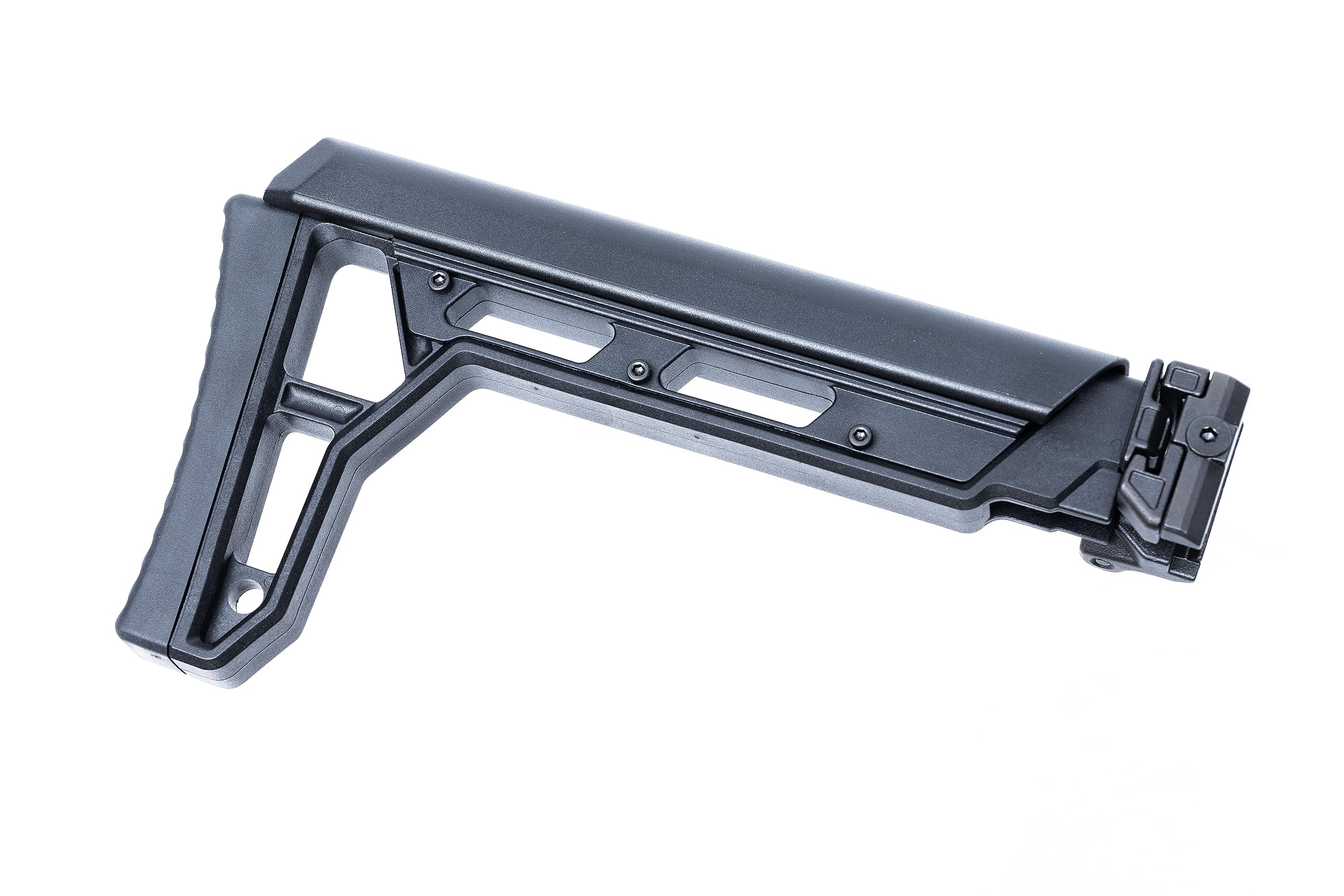 ■商品説明ピカティニーレールに取り付け可能なフォールディングストックです。 C.A.T.シリーズ以外にも、ピカティニーストックベース仕様の電動ガンに取り付け可能です。 バッテリーはチークパッド内に収納する形となり、スムーズな脱着が可能です。 C.A.T.シリーズに取り付ける際は、商品写真を参考に配線を通してください。