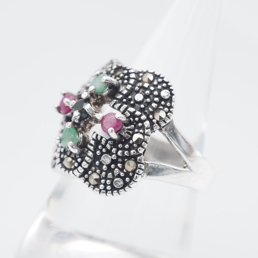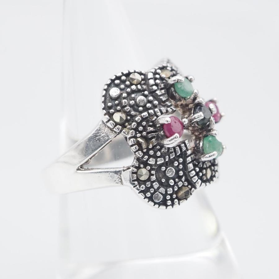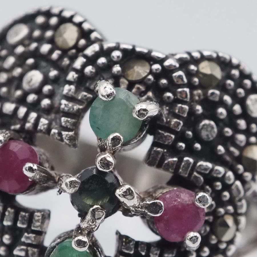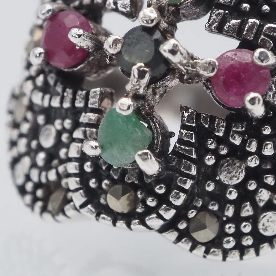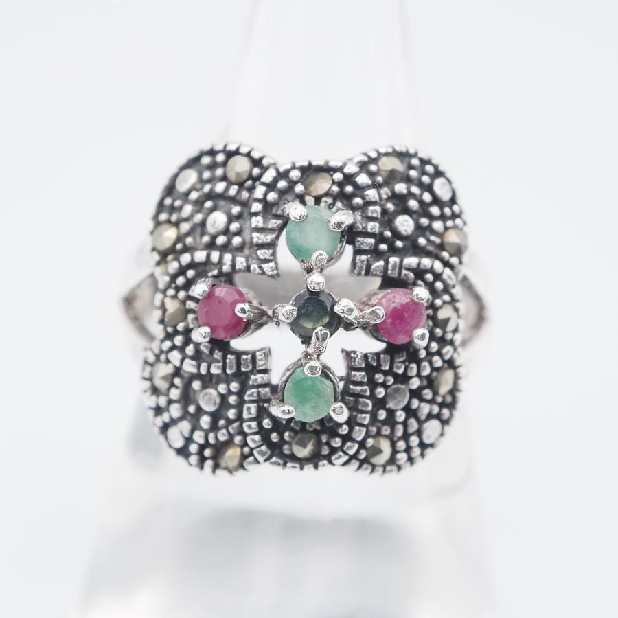 簡易的なテスターで確認し、サファイア、ルビー、エメラルドの反応が出ましたが、断言できません。画像をたくさん掲載しておりますのでそちらでご確認とご判断をお願いいたします。