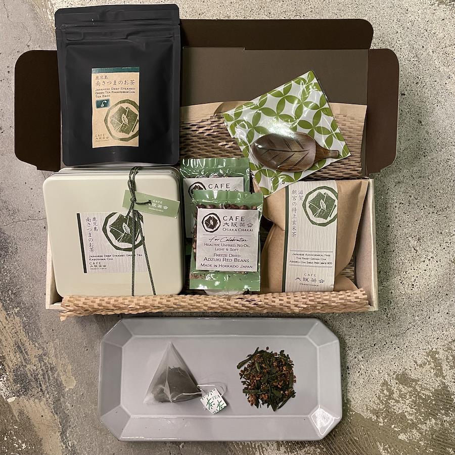 お土産で人気のお茶とフリーズドライ小豆のセット。農薬不使用の滋賀県の朝宮茶の玄米茶と鹿児島茶の深蒸煎茶のティーバッグ、フリーズドライ小豆のSサイズ3袋、可愛い茶さじ付きです。お客様にご利用頂けるメッセージカードも同封いたします。