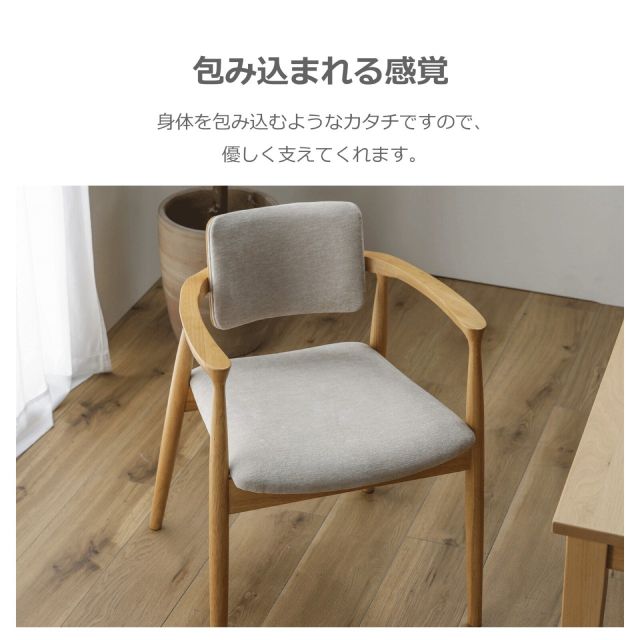 背もたれから肘にかけての曲線が美しい、天然木のダイニングチェア。体を包み込むように支えてくれます。背面にさくりを入れており、椅子の出し入れがしやすくなっております。〈製品規格〉■サイズ:W56×D56.8×H74.5cm■重量:6.8kg■材質:ラバーウッド無垢■組立:完成品■生産国:ベトナム
