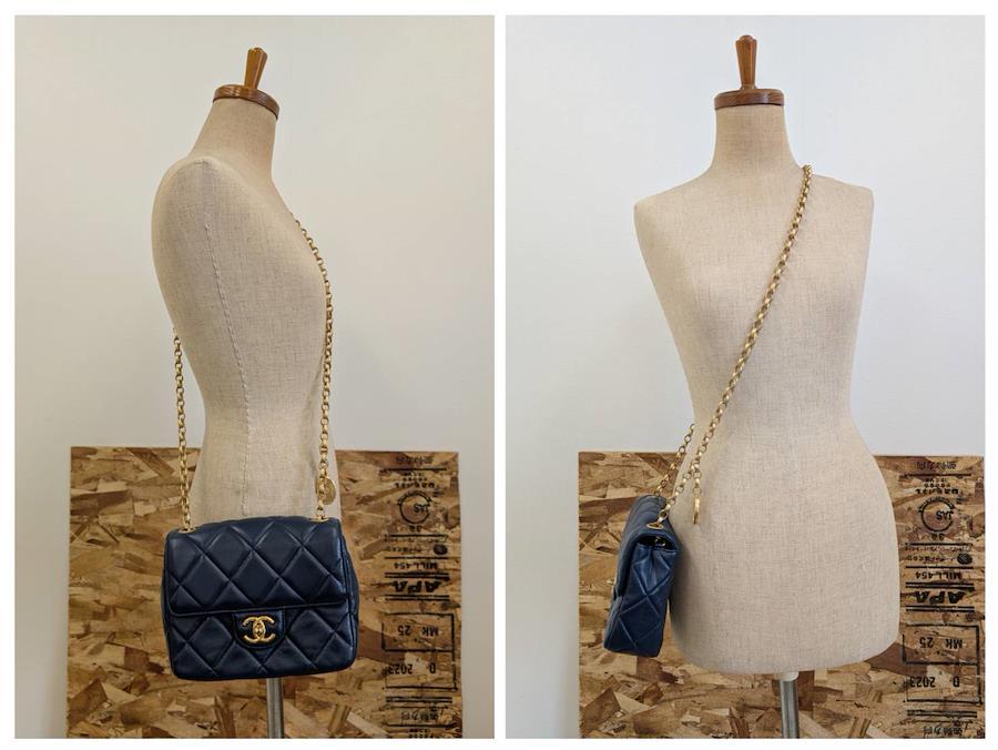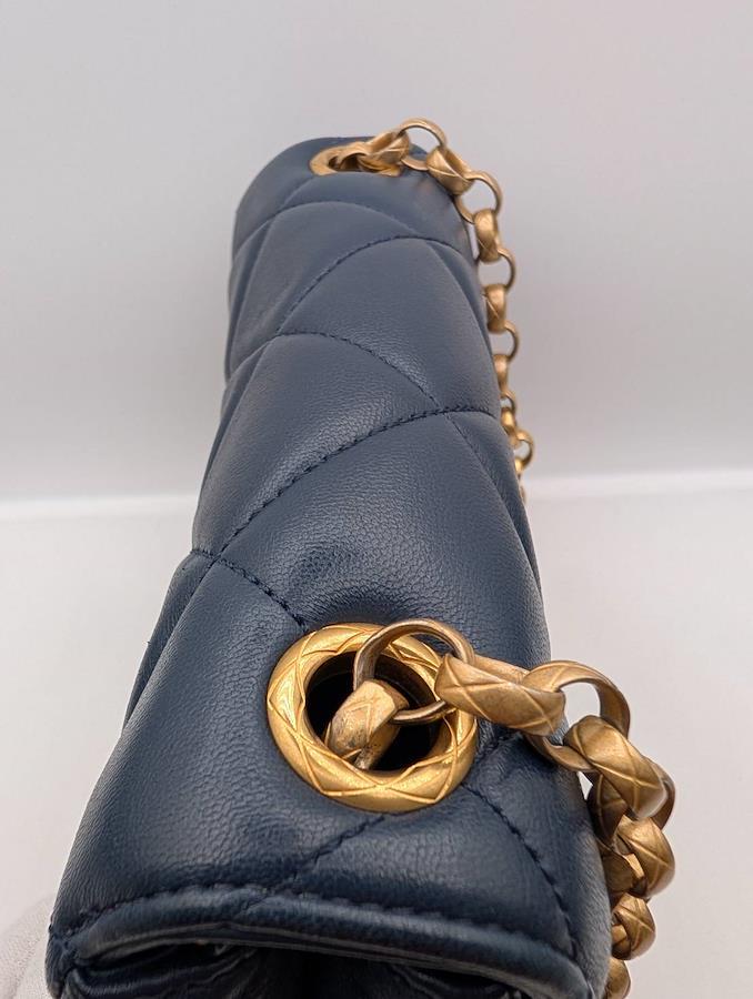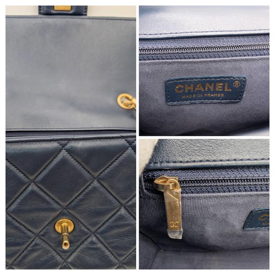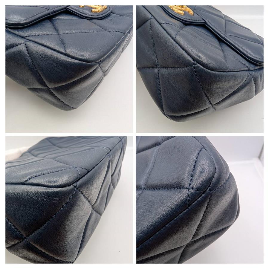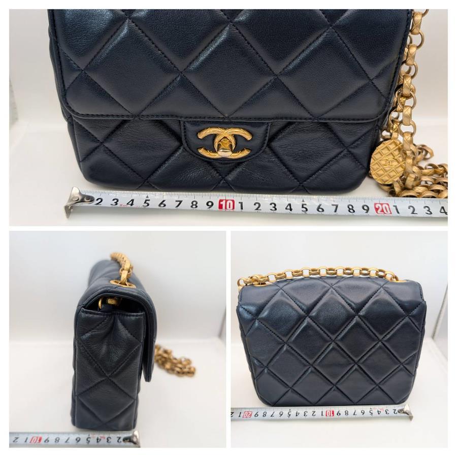 素材:ラムスキン キルティング: カラー:ネイビーブルー シリアルナンバー:シリアルプレート(ランダム): 開閉部:ココマークツイストロック開閉フラップ 内側:ファスナーポケット×1: ロゴ:ビジュー仕上げ |