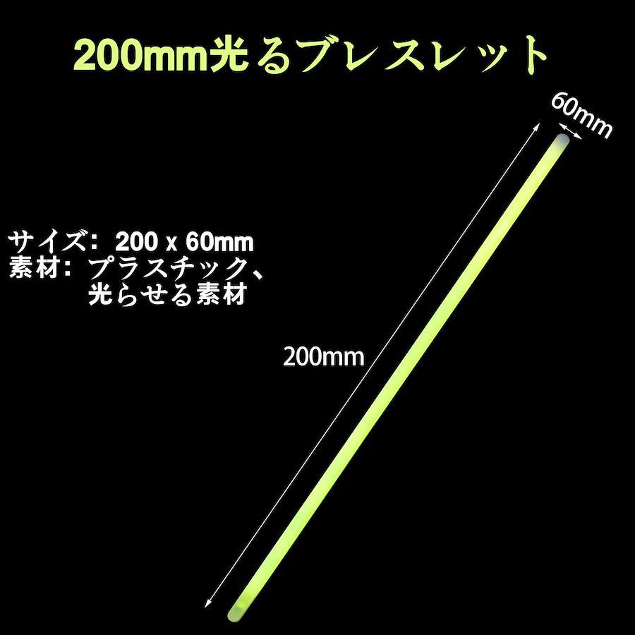 8色光るブレスレットカラー:8色入り(青、緑、ピンク、赤、黄、オレンジ、紫、白)。入り数:100本。点灯時間:夏期3~8時間、冬期:5~8時間。温度が低ければ低いほど長くになります。サイズ:一本約20cm×0.5×0.5cm。DIYできる:中には120個の接続ジョイントと8個のボールジョイントが入って、テープが4巻付きます。発光ブレスレット、発光ネックレスを作るのに使えます。ボールジョイントを利用して花や提灯の形を作ることができます。そしてマッチマンの形を模倣して蛍光棒を体に貼り付けてから、電気を消すとサプライズがあります!使用方法:サイリウムライトをパキッと折って、上下に振るだけで、たちまち華やかな美しい蛍光が出てきます。(夜は蛍光効果がもっと良いです。)適用場合:ライブ、コンサートなどのイベント、クリスマス、ハロウィンパーティーなどに最適です!クラブイベント、カラオケ、宴会、お祝い事、夜遊び、縁日、花火大会、お祭り、キャンプ、マジック、学園祭、景品としても利用できます。注意点:内部には液体があり、破裂することを注意してください。カラーについて、発光前は色が見分けしにくくて、発光後に色目はご確認ください。【免責事項】メーカーによる商品リニューアルに伴いパッケージ(内容量も含む)変更が行われた場合、新パッケージでお届け致します事ご了承願います。