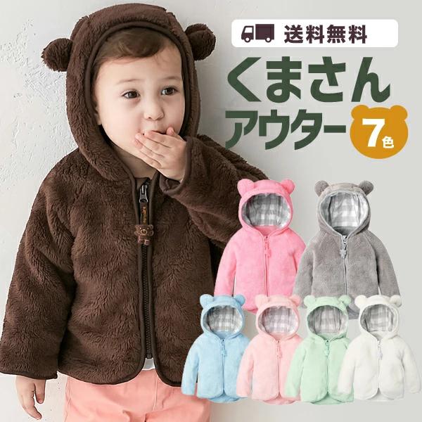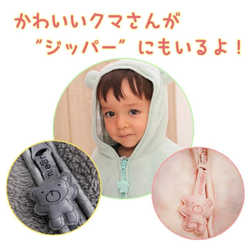 かわいいクマさんに変身できる"もこもこ"アウターです。寒い日のお出かけも、もこもこ帽子であったかい!ジッパーのところにも、クマさんがついていて、ベビーも大喜びです。