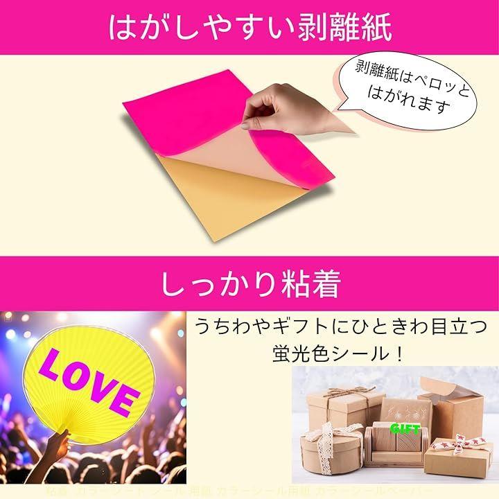 「製品仕様」A4(210mmx297mm)蛍光カラーシール100枚