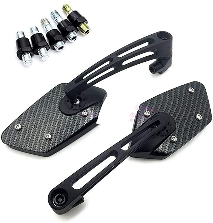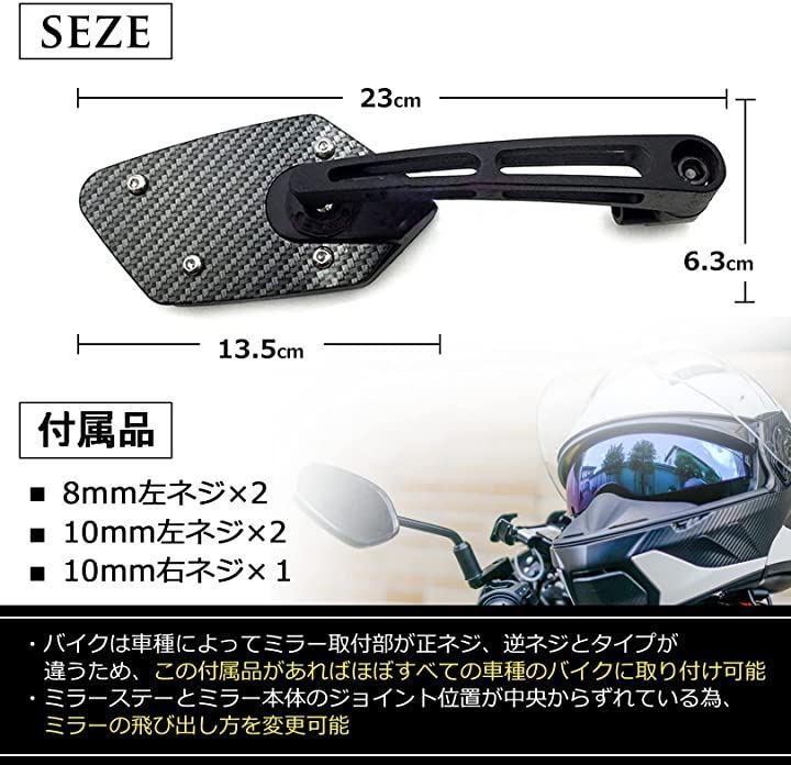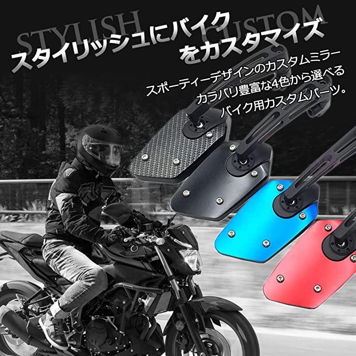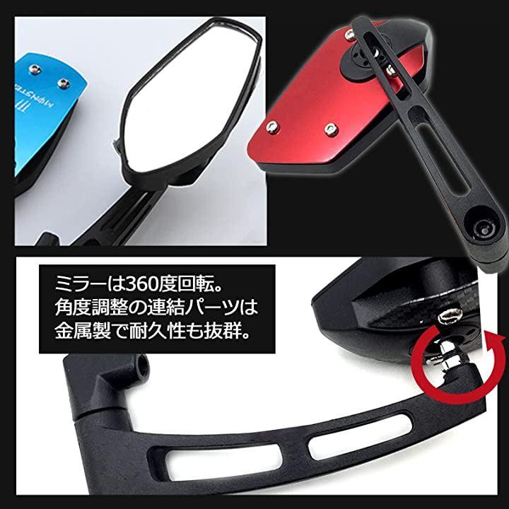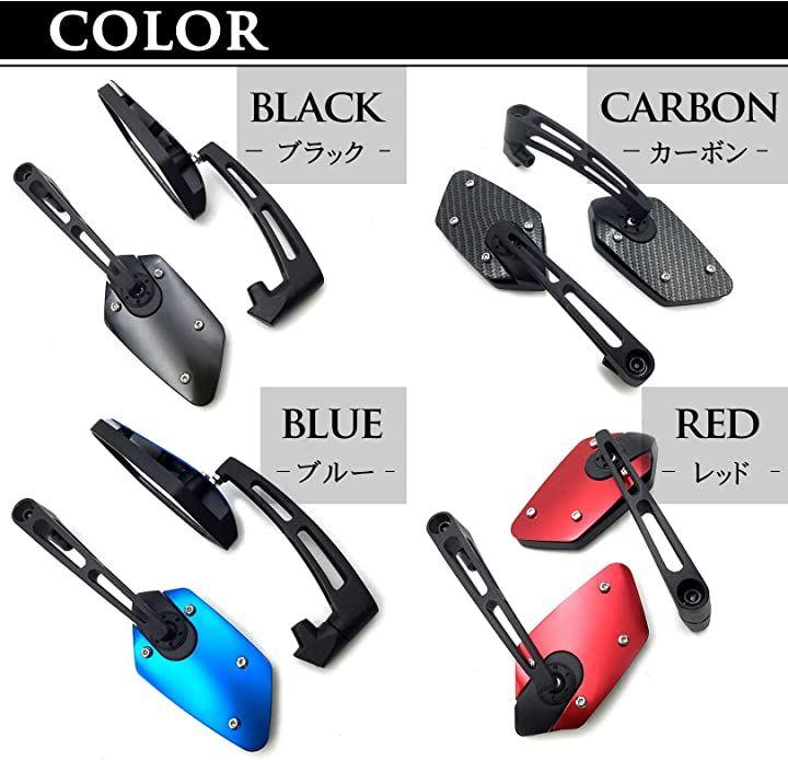 ・「カラー」ブラック、カーボン調、レッド、ブルー「ミラー面」鏡面:フラット(平面鏡),ハーフマット仕上げ「付属品」8mm左ネジx2、10mm左ネジx2、10mm右ネジx1*モニターの環境により色の見え方に若干差が生じる場合がございます。